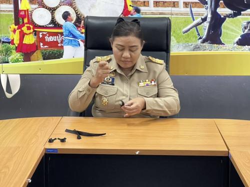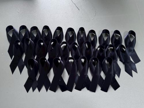 สำนักงานพัฒนาชุมชนอำเภอเกาะคา จังหวัดลำปาง : ร่วมประดิษฐ์เข็มกลัดริบบิ้นสีดำ แจกประชาชนร่วมถวายความอาลัย "พระพันปีหลวง"